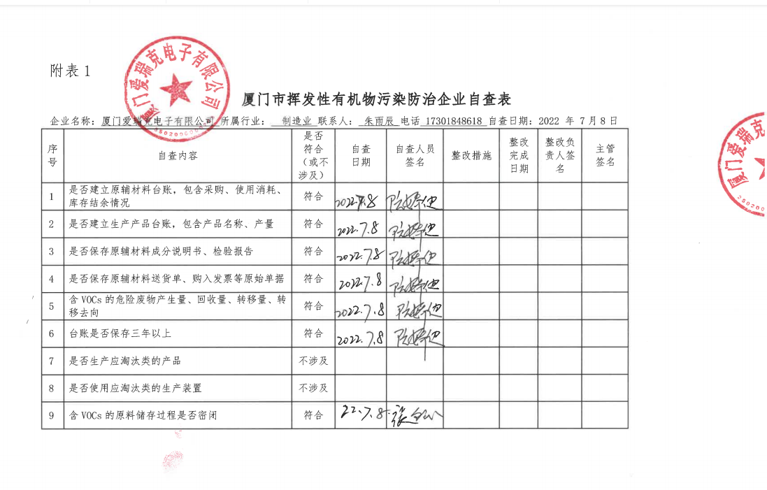 廈門市揮發(fā)性有機(jī)物污染防治企業(yè)自查表