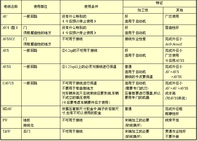 電線的種類和特征